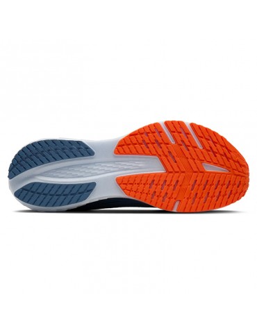 La mediasuela DNA Flash V2 de las Brooks Launch 12, proporciona una amortiguación reactiva que impulsa cada zancada con energía. Con un drop de 8 mm (26 mm en el talón y 18 mm en la puntera), favorece una transición fluida desde el talón hasta la puntera, optimizando la eficiencia de la pisada.