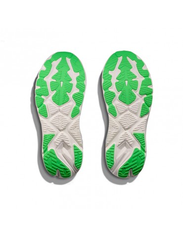 La suela de la Hoka Arahi 8 incorpora goma de alta resistencia a la abrasión en un diseño que favorece una transición fluida. Además, incluye detalles reflectantes para mejorar la visibilidad en condiciones de baja luz.